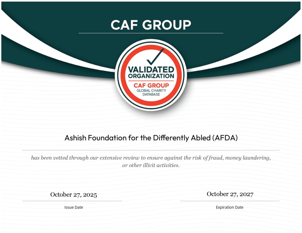 Ashish Foundation for the Differently Abled Charitable Trust (AFDA) works with children and adults with autism and other developmental disabilities established in 2007.