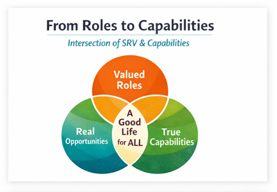 Here, work is not just income—it is identity, dignity, and contribution, echoing both Sen’s emphasis on meaningful functionings and SRV’s focus on socially valued roles