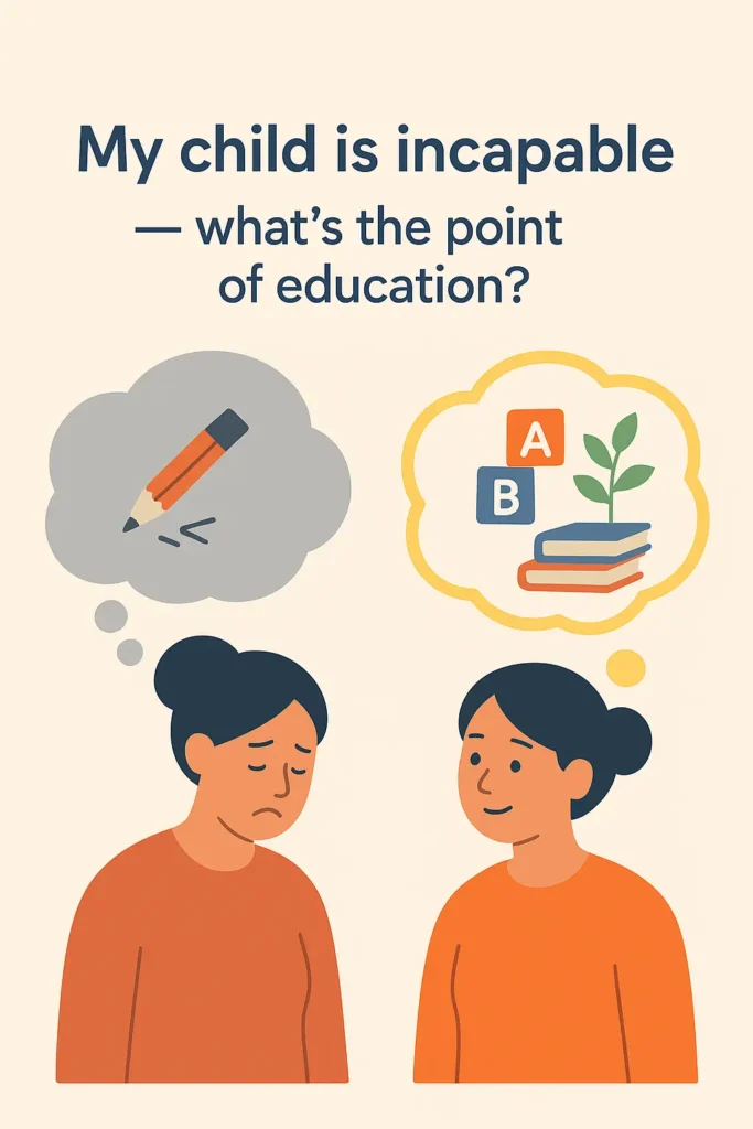 When parents are repeatedly told that their child “cannot” do things, hopelessness creeps in. For some, this becomes the belief that education itself is wasted effort.